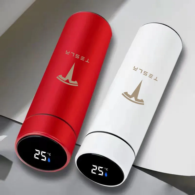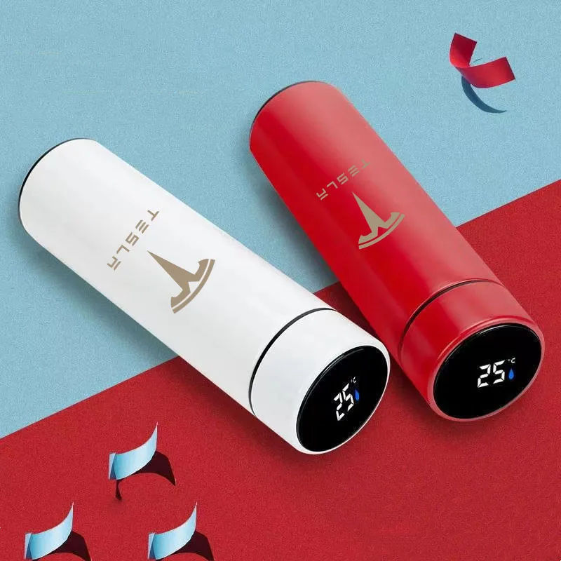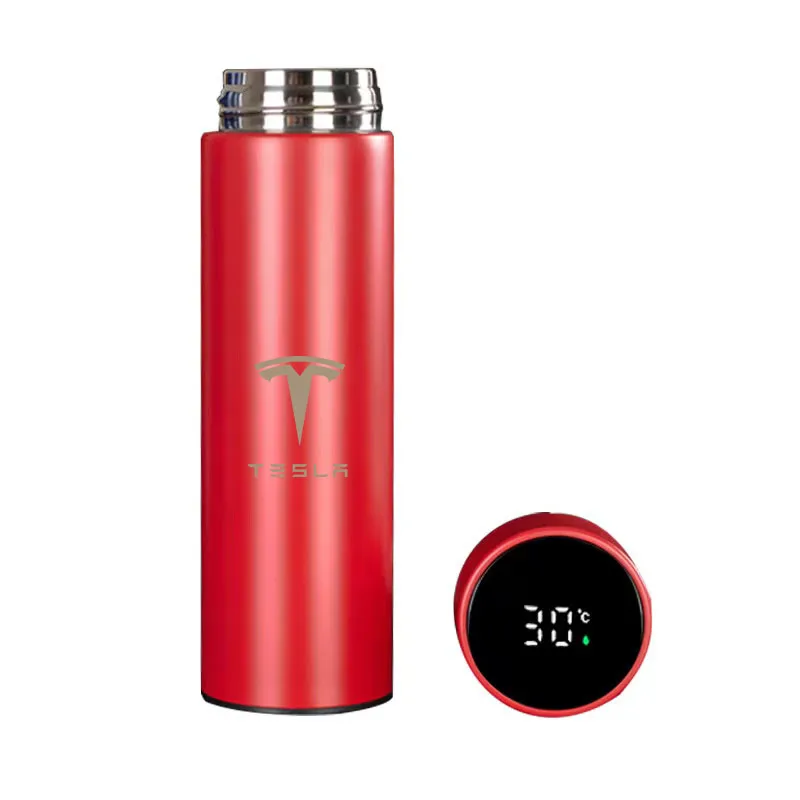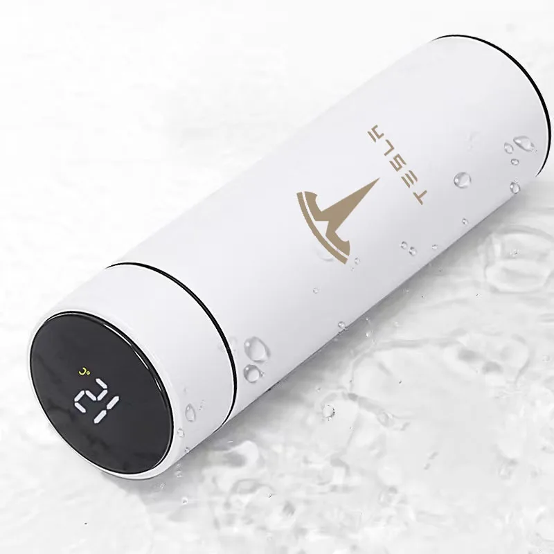 Tesla Model 3 design Inteligentní termoska 500 ml s displejem který ukazuje teplotu. S dotykovou obrazovkou HD LCD pro rychlé zobrazení teploty nápoje v reálném čase, před pitím můžete zjistit teplotu vody, vyhnete se tak popálení.